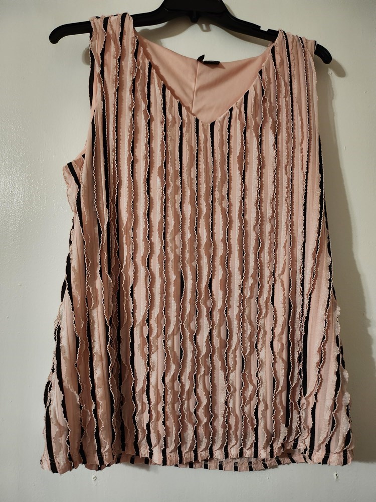 Sleeveless, pink and black ragged edged top. Size 2x