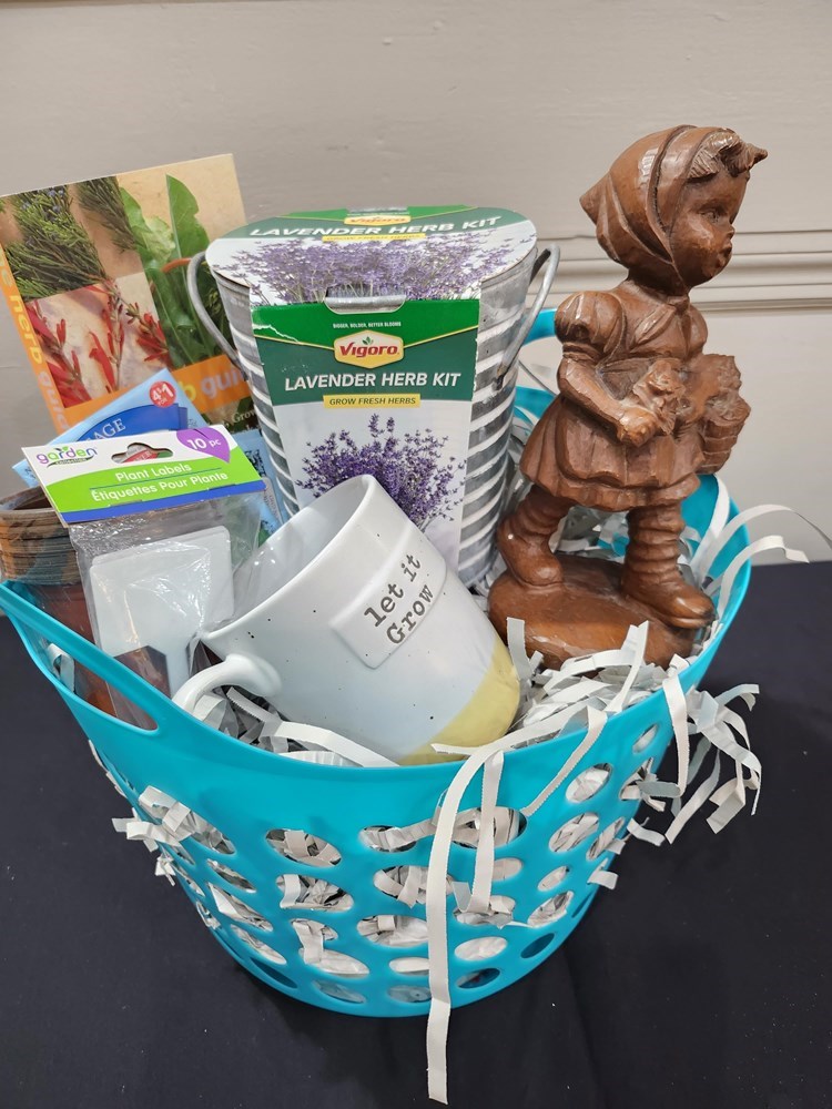 Basket of seeds, planter and other items to try your hand at gardening.