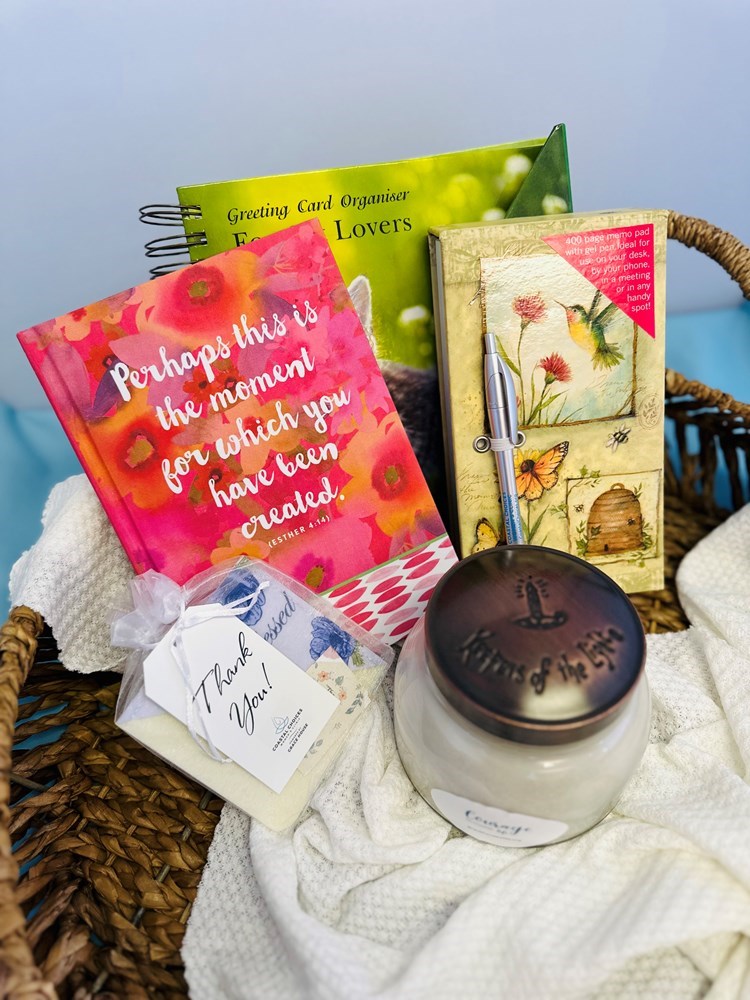 Cat Lover's Greeting Card Organizer(Included 24 Adorable Cat Note Cards), Notepad, Journal and Scented Candle
