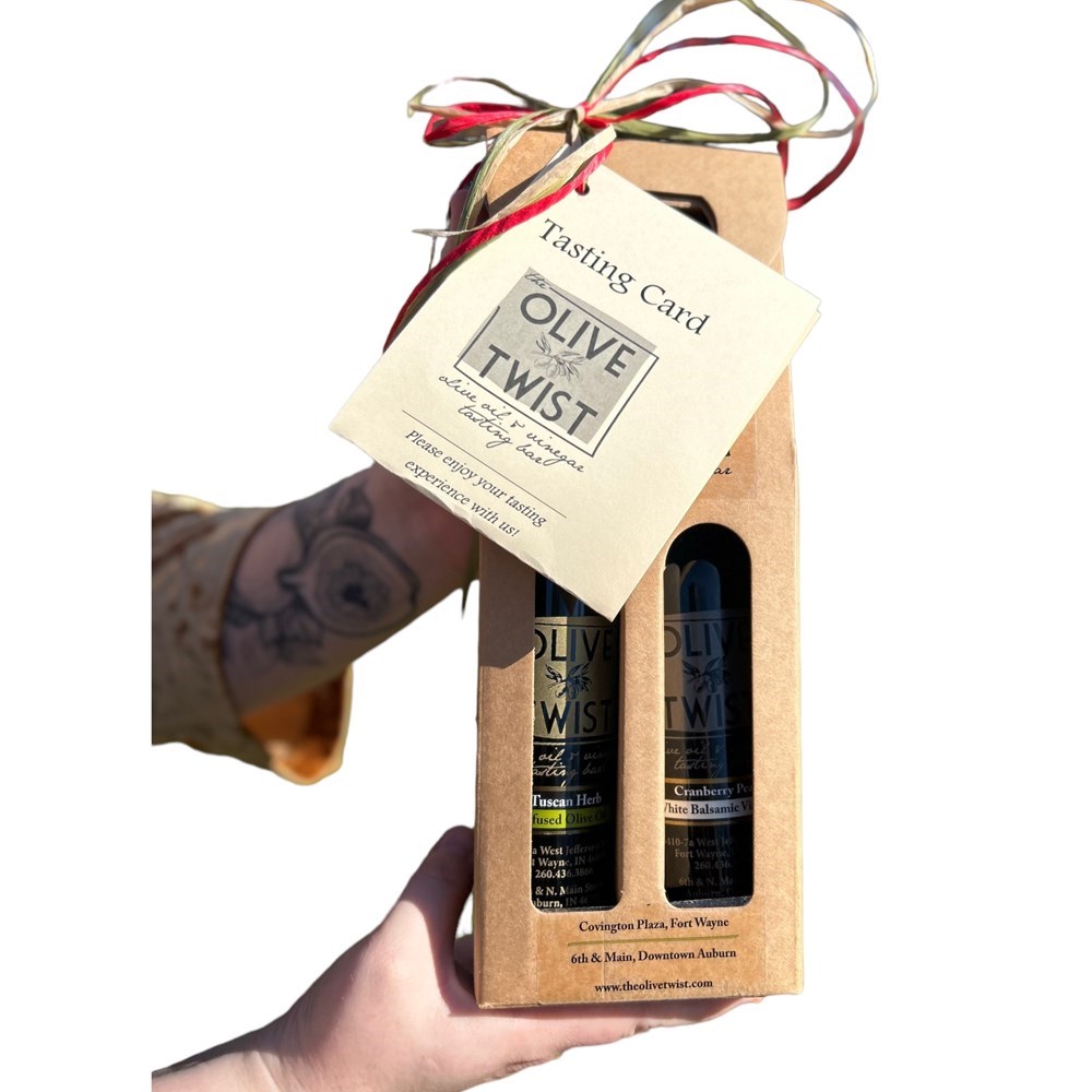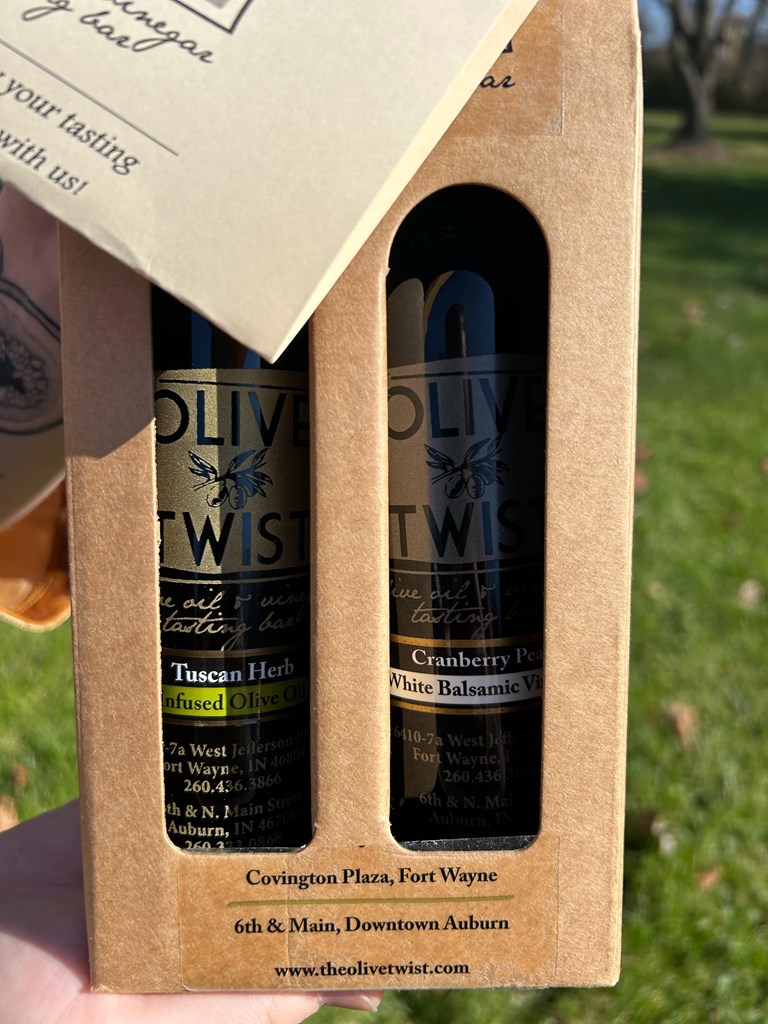 This bundle contains one (200mL) bottle of Cranberry Pear White Balsamic Vinaigrette and one (200mL) bottle of Tuscan Herb Infused Olive Oil. PLEASE NOTE: IF YOU LIVE IN FORT WAYNE OR NEARBY AND WOULD LIKE TO PICK UP YOUR ITEM FROM ME, PLEASE OPT OUT OF THE SHIPPING FEE, BY USING THE OPT OUT BUTTON.