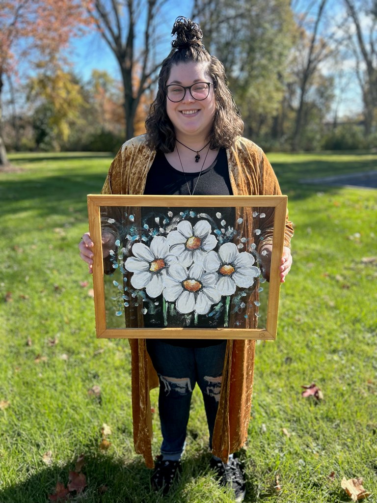 This beautiful painting was created on a screen background and would be lovely in any home. Size 20" in length and 16" in width. Very lightweight. PLEASE NOTE: IF YOU LIVE IN FORT WAYNE OR NEARBY AND WOULD LIKE TO PICK UP YOUR ITEM FROM ME, PLEASE OPT OUT OF THE SHIPPING FEE, BY USING THE OPT OUT BUTTON.