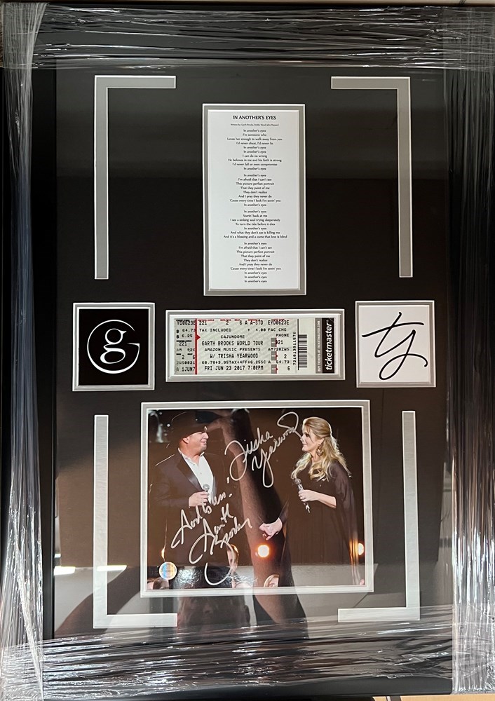 Professionally framed signed collage by Country Music superstars - husband & wife - Garth Brooks & Trisha Yearwood