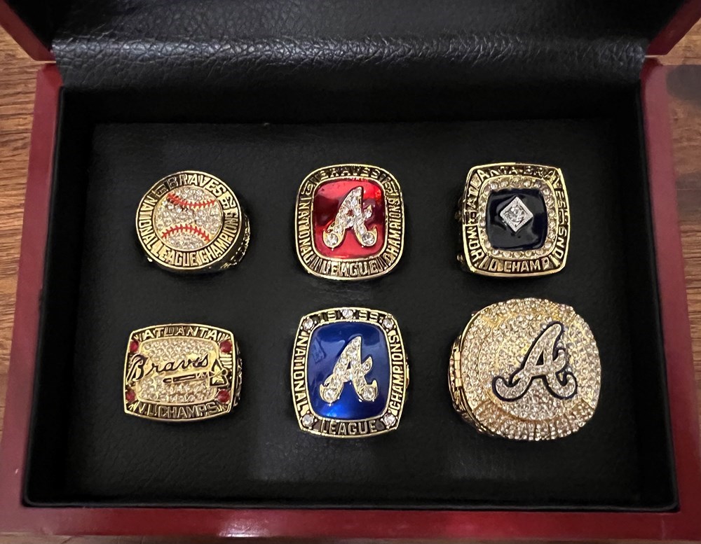6 Replica Rings of Braves World Series and National LEague Championships