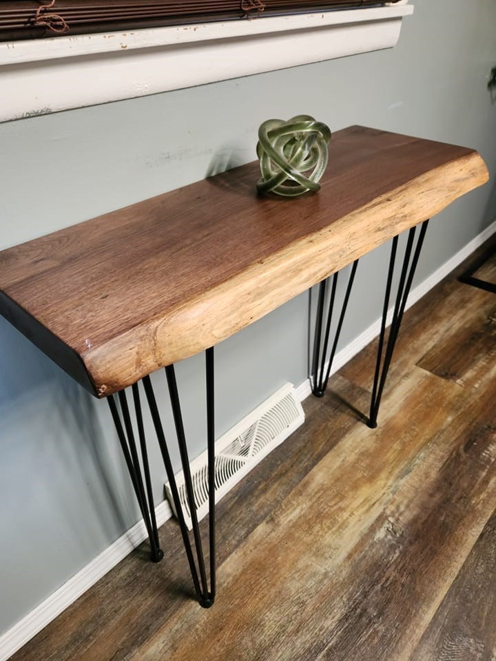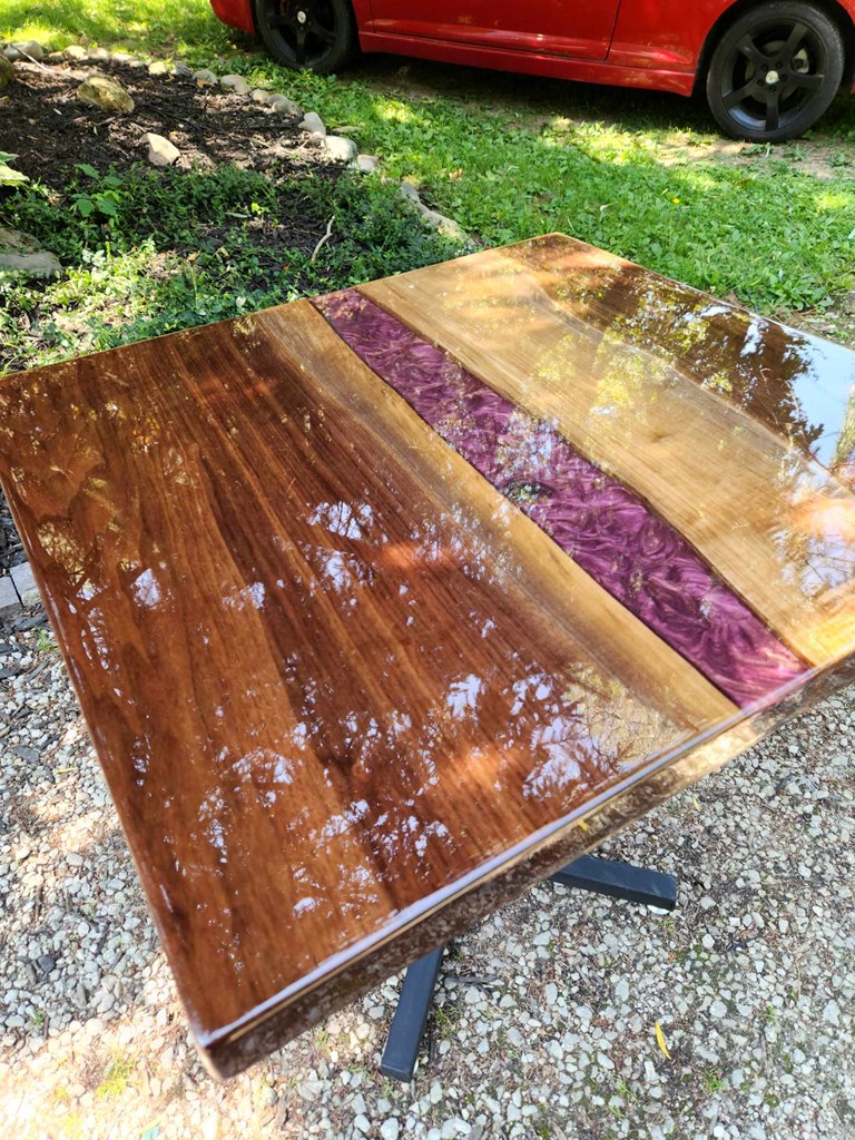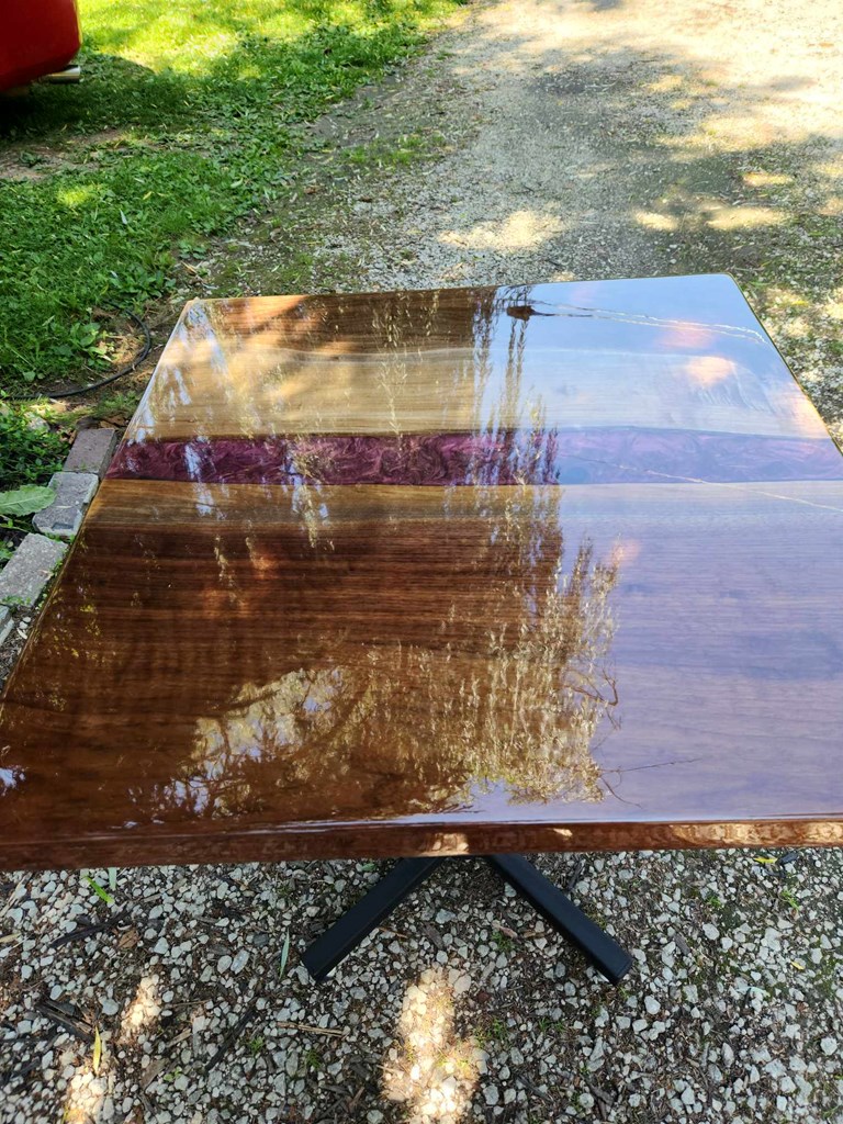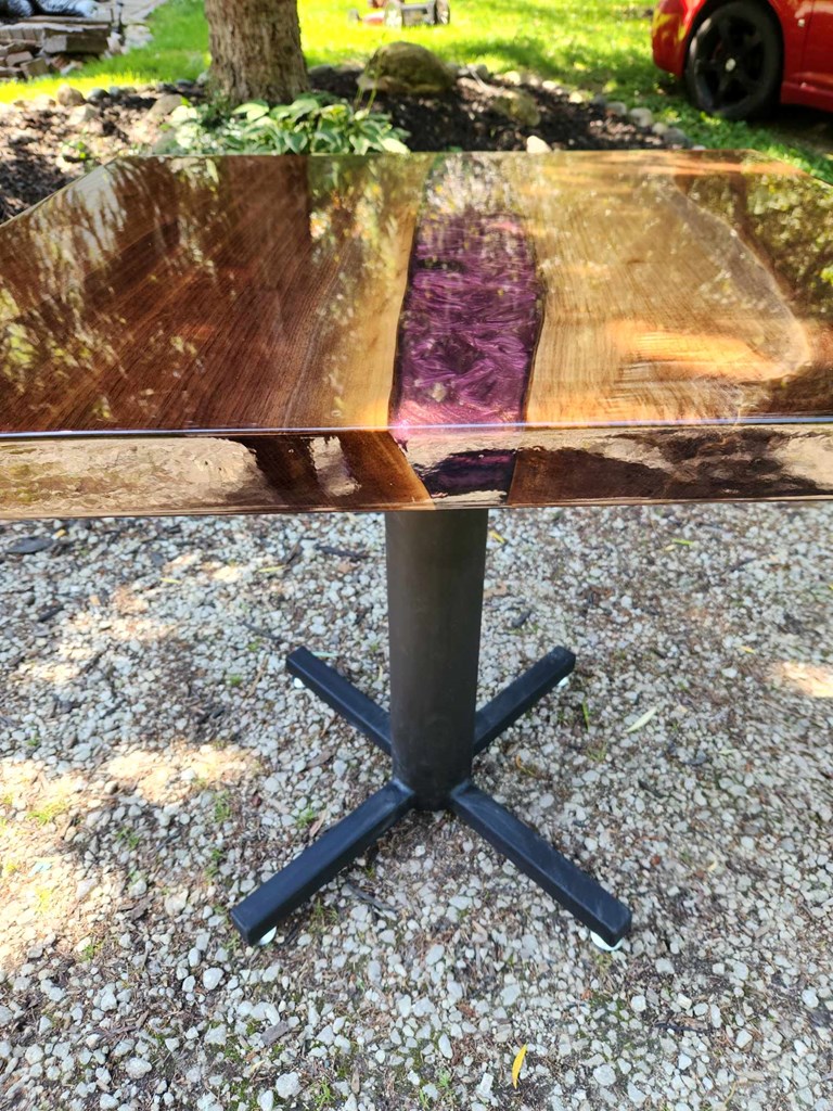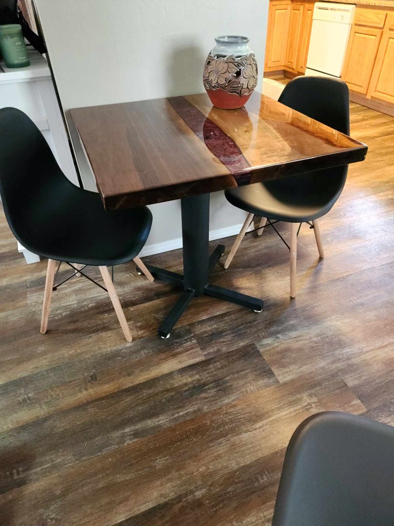 NO SHIPPING AVAILABLE - LOCAL PICKUP ONLY 30' x 30' Bistro Table and 30 inches tall Handcrafted by Decor Krumanaker It has a very minor flaw on the surface, but it is exceptionally beautiful. Chairs not included. PLEASE NOTE: IF YOU LIVE IN FORT WAYNE OR NEARBY AND WOULD LIKE TO PICK UP YOUR ITEM FROM ME, PLEASE OPT OUT OF THE SHIPPING FEE, BY USING THE OPT OUT BUTTON.