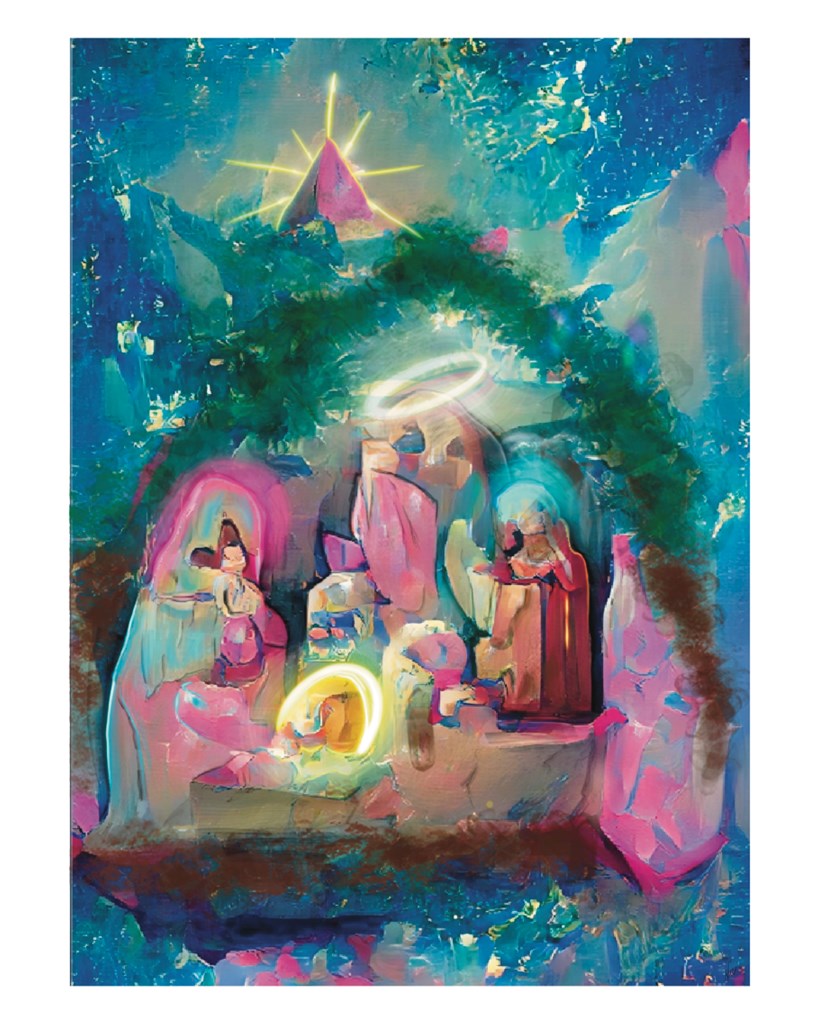 Holiday tree decor by Wooden Thread and Holiday Nativity Scene 8x10 design print by Miborinkenpr (graphic artist based in Puerto Rico). PLEASE NOTE: IF YOU LIVE IN FORT WAYNE OR NEARBY AND WOULD LIKE TO PICK UP YOUR ITEM FROM ME, PLEASE OPT OUT OF THE SHIPPING FEE, BY USING THE OPT OUT BUTTON.