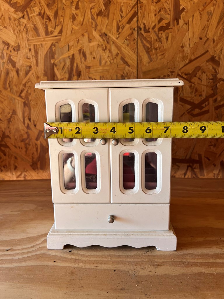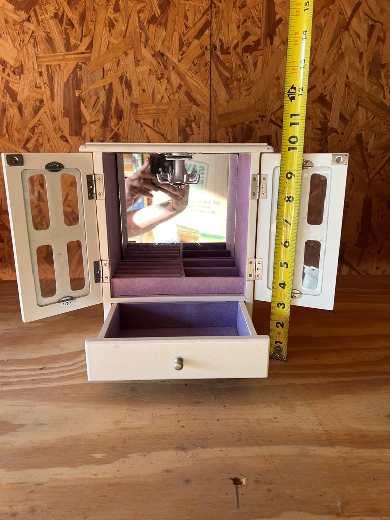WHITE JEWELRY BOX ***Local Pickup In Dayton Only*** Storage unit clean out. There will be new and used items. All items may show signs of dust or have a musty odor from being in storage for many years and will need to be cleaned! Everything is sold as-is. We do our best to point out imperfections but please look closely at pictures. If you have any questions or concerns, please message us before bidding. ***LOCAL PICKUP ONLY*** Pickup options will be available Monday through Friday. Times and address to pick up will be sent to the winning bidders. Thank you in advance:)