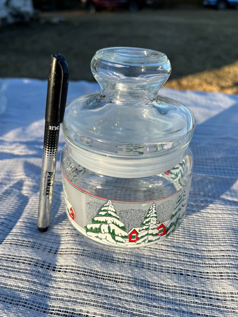Glass Christmas Jar With Lid ***Local Pickup Only*** Storage unit clean out. There will be new and used items. All items may show signs of dust or have a musty odor from being in storage for many years and will need to be cleaned! Everything is sold as-is. We do our best to point out imperfections but please look closely at pictures. If you have any questions or concerns, please message us before bidding. ***LOCAL PICKUP ONLY*** Pickup options will be available Monday through Saturday. Times and address to pick up will be sent to the winning bidders. Thank you in advance:)