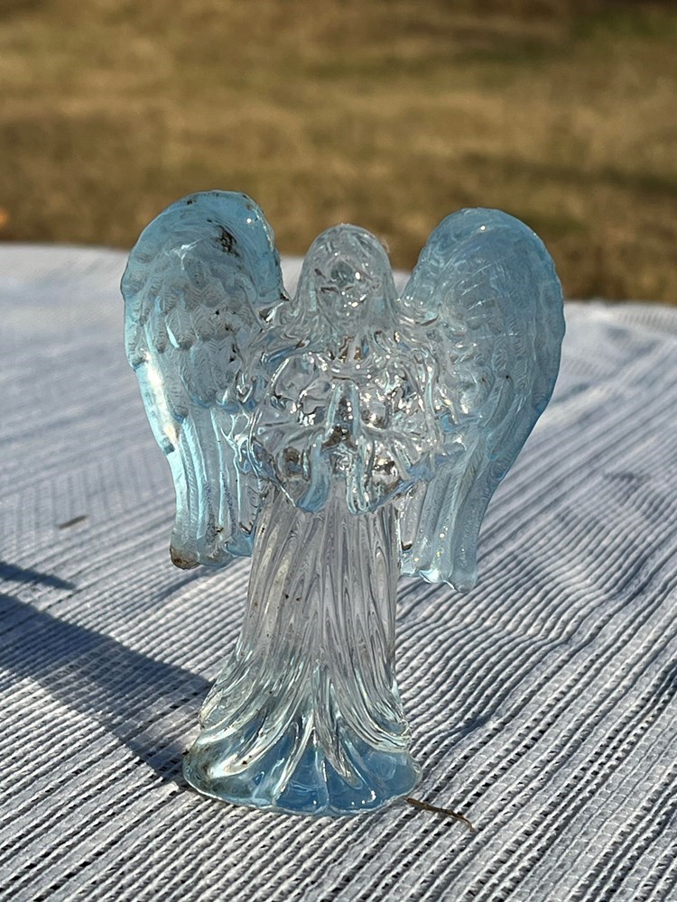 Vintage Glass Praying Angel With Frosted Blue Tint ***Local Pickup Only*** Storage unit clean out. There will be new and used items. All items may show signs of dust or have a musty odor from being in storage for many years and will need to be cleaned! Everything is sold as-is. We do our best to point out imperfections but please look closely at pictures. If you have any questions or concerns, please message us before bidding. ***LOCAL PICKUP ONLY*** Pickup options will be available Monday through Saturday. Times and address to pick up will be sent to the winning bidders. Thank you in advance:)